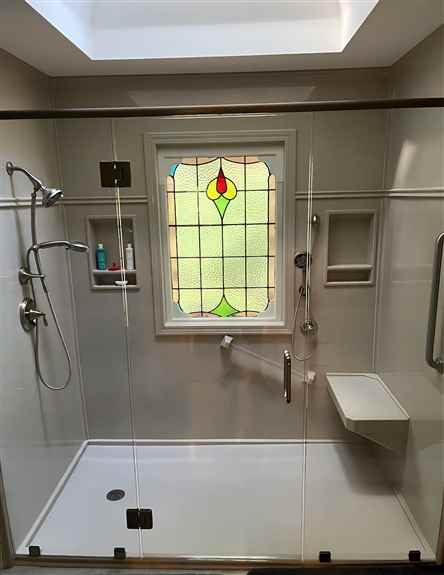 No grout, no maintenance, and no acrylic (plastic) Showers. Our man-made stone showers are truly beautiful and durable, providing the industry's only "Forever Warranty" on the material.